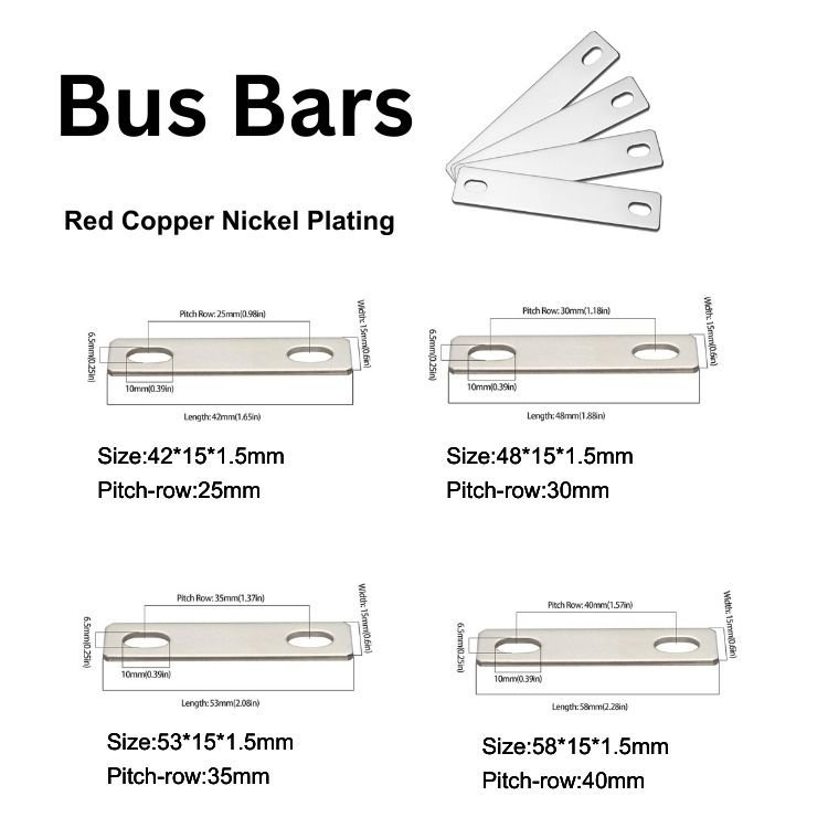 Crafted from Grade A pure red copper and coated with a durable nickel plating, these bus bars deliver superior electrical conductivity, excellent chemical resistance, and outstanding corrosion protection—perfect for long-lasting lithium battery connections.